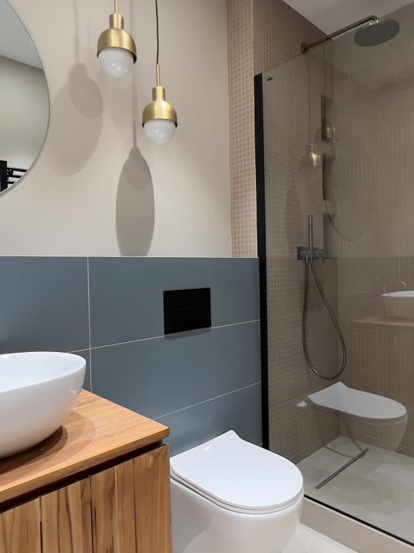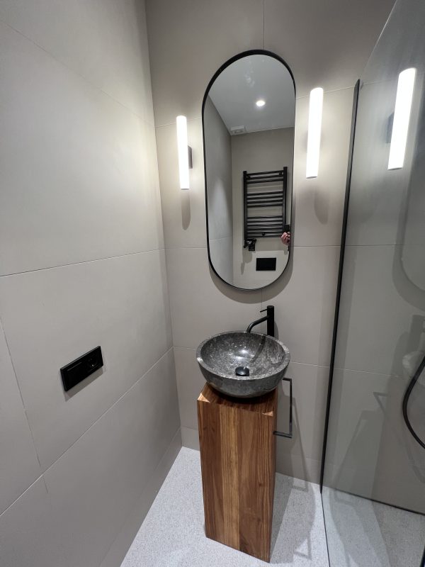 - Плиточные работы: включая укладку плитки на пол и стены, а также установку строительного душа.